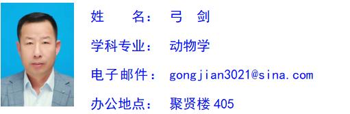 弓剑,民盟盟员,内蒙古农业大学农学博士,内蒙古师大suncitygroup太阳新城官网教授,动物学专业动物营养方向硕士研究生导师。主要从事反刍动物微量元素与维生素营养方面的研究工作,承担动物生理学、青春期教育、中学生物学实验教学研究等相关课程的教学和生物科学专业的教育实习指导。主持国家自然科学基金项目2项,主持完成内蒙古自治区自然科学基金项目1项;参与国家级、省部级、校级项目10余项;出版学术专著1部;在《biological trace element research》《livestock science》《animal feed science and technology》《动物营养学报》《中国饲料》《饲料研究》等刊物发表论文20余篇,其中4篇被SCI收录、5篇被CSCD核心版收录。获得内蒙古师范大学科研成果奖励3项,教学成果奖励1项。