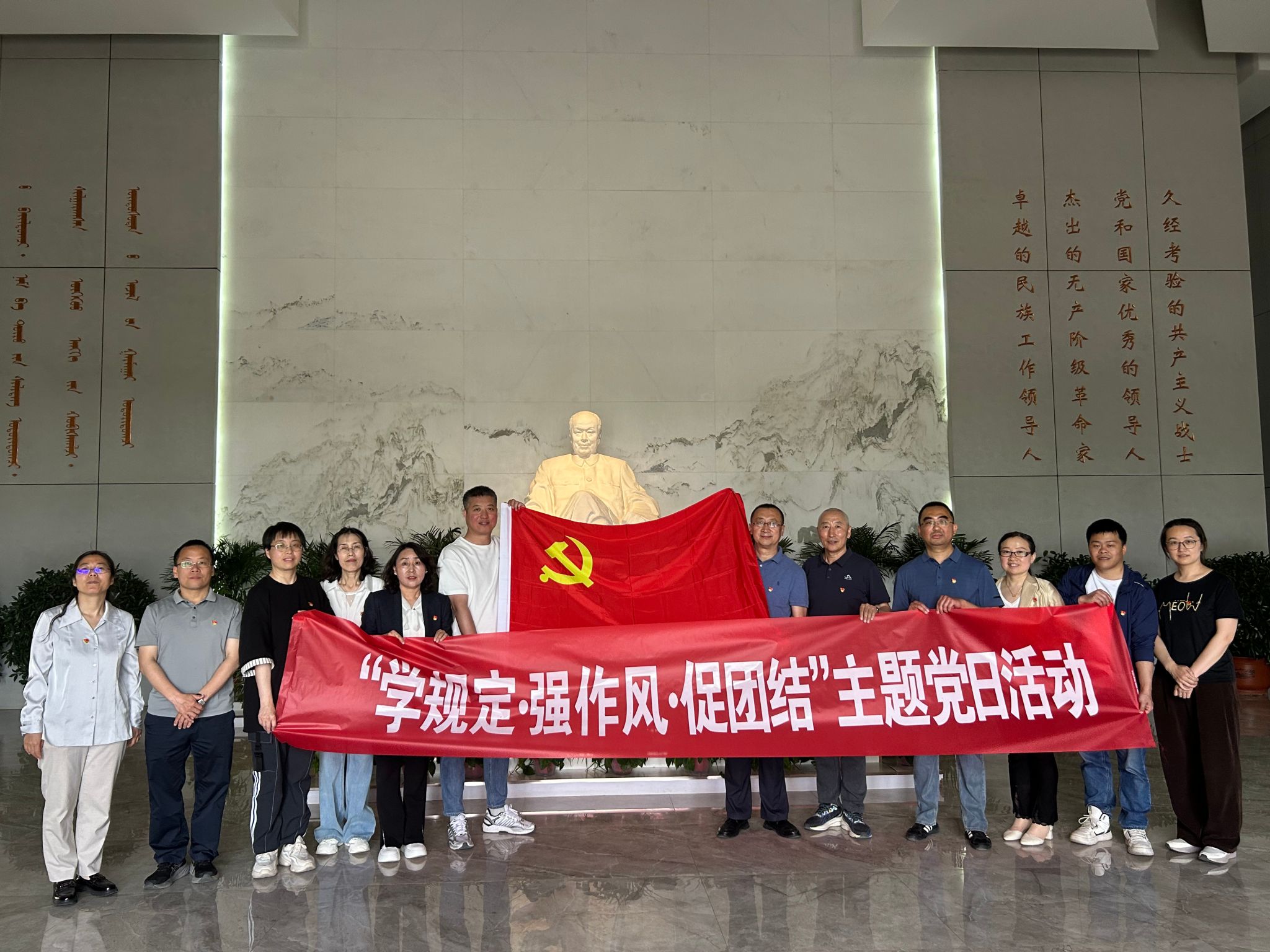 五月是内蒙古自治区“民族政策宣传月”,为深入学习贯彻党的民族政策,铸牢中华民族共同体意识,进一步引导支部全体党员加深对中央八项规定精神学习教育的认识。5月21日,教工第一党支部组织党员教师前往乌兰夫纪念馆开展“学规定·强作风·促团结”主题党日活动,重温党的光辉历程,感悟老一辈无产阶级革命家的崇高精神。