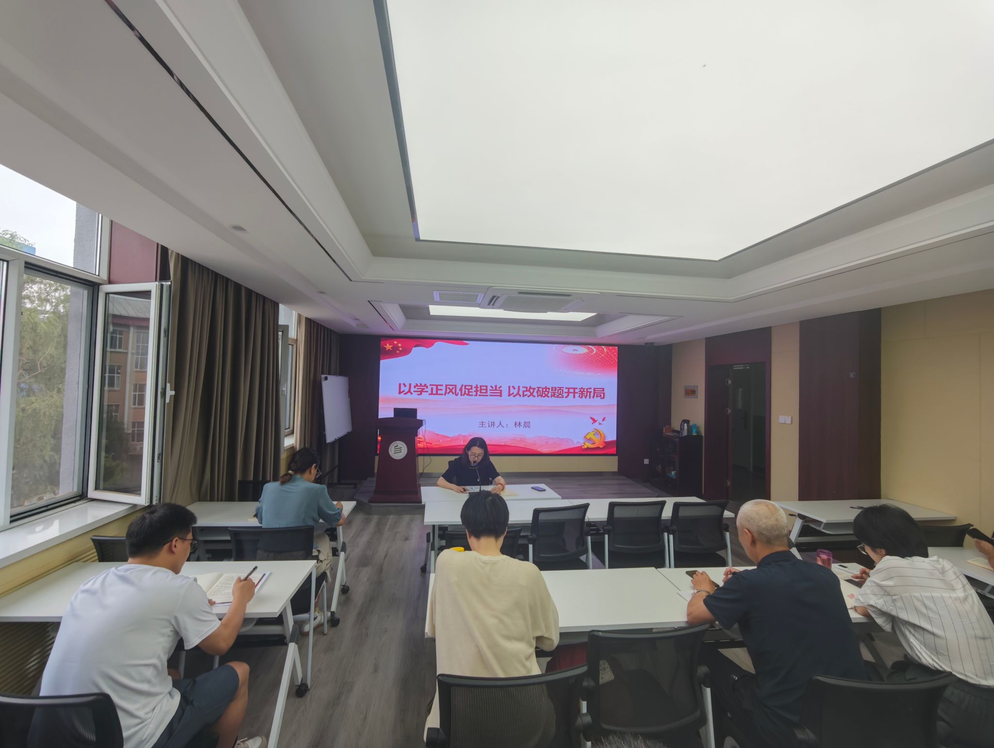 首先,党支部书记林晨以“以学正风促担当,以改破题开新局”为题讲授专题党课,党课围绕中央八项规定精神的历史意义、精神内涵、时代价值及如何贯彻落实逐一展开。通过认真学习授课内容,进一步巩固了前期的学习成果,全体党员的政治意识和纪律意识得到进一步增强,担当作为、干事创业的内生动力进一步激发。