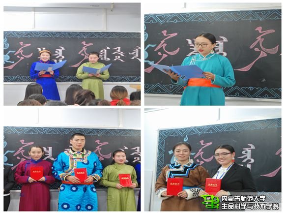 11月15日晚 为了学习长征精神,更好地继承和弘扬长征精神,我院筹划举办了以“新时代 新长征”为主题的朗诵比赛,纪念"红军长征胜利80周年"。此次比赛分为蒙语组和汉语组。汉语组的评委有:洪天澍(13级生物技术三班),贾若愚(13级生态班),付裕(13级生物技术二班),张然(14生物技术班)。蒙语组的评委有:萨出拉(13级生物科学蒙班),海勒思(13生物科学蒙班),我院研究生:查苏娜,乌日柴胡,好兰红格尔 。在比赛过程中,各位选手表现出色,相互交流,相互学习,在蒙语组中,选手们的民族服饰更是为比赛增添了光彩。